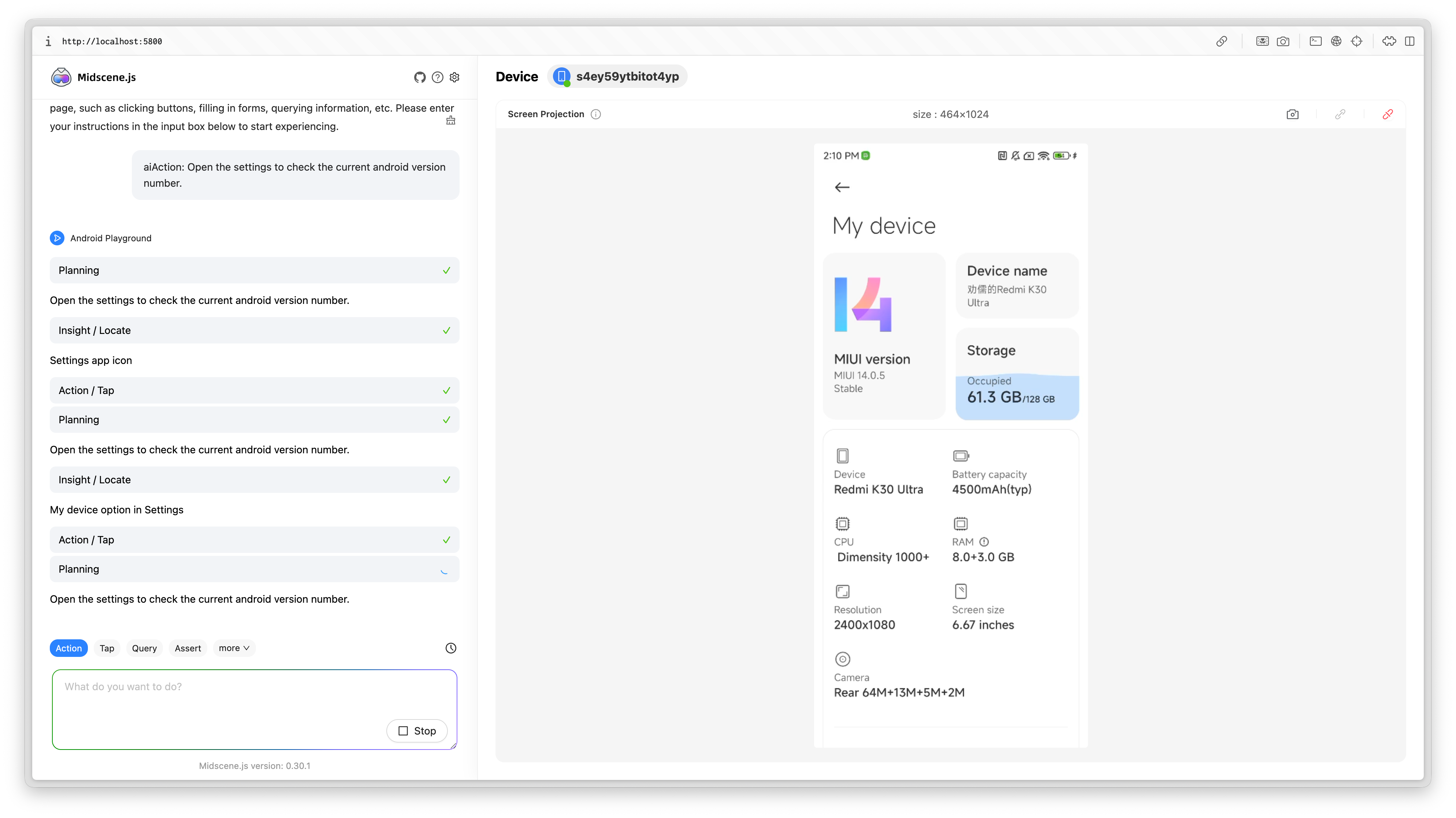 With Midscene.js playground, you can experience Android automation capabilities without writing any code.